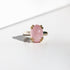 This ring features a 10.5-carat oval morganite cabochon in a mixed-metal design with a 10k yellow gold setting and silver shank. Size 7.